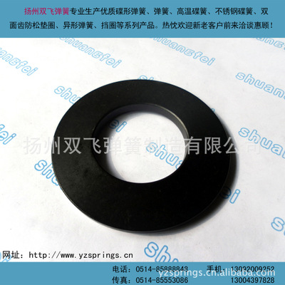 本公司碟形彈簧質量嚴格執行GB/T1972-2005及DIN2093標準,提供外徑6-250mm的標準彈簧,250-600mm按需方圖紙生產或代為設計生產。材料采用高質量的彈簧鋼60Si2MnA或50CrVA,我公司也可采用特殊材料制造,如不銹鋼材料,普通不銹鋼:301、304;沉淀硬化不銹鋼:17-7PH、15-5PHMo;30W4Cr2v、GH145、GH718等;特殊材質需要預訂。揚州雙飛彈簧制造有限公司位于文明秀麗的揚州維揚區
